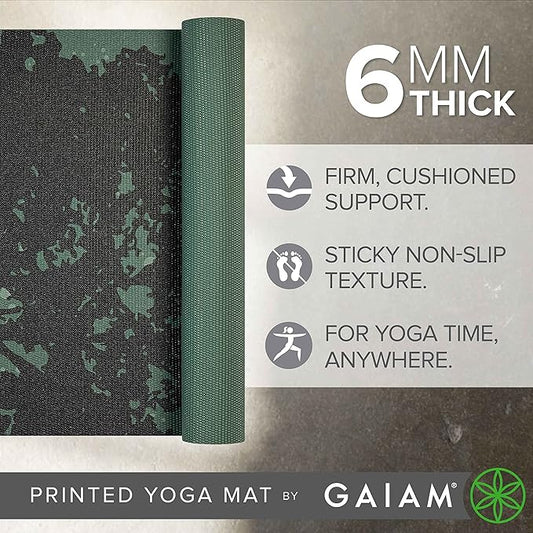 Gaiam Yoga Mat - Premium 6mm Print Extra Thick Non Slip Exercise & Fitness Mat for All Types of Yoga, Pilates & Floor Workouts (68"L x 24"W x 6mm Thick)
