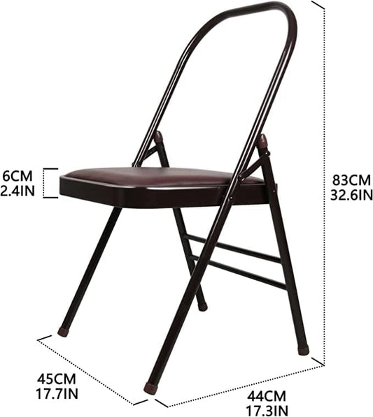 Yoga Auxiliary Chair Portable Folding Yoga Chair with Non-Slip Feet Covers for Flexibility and Strength Training with Resistance Belt, Brown