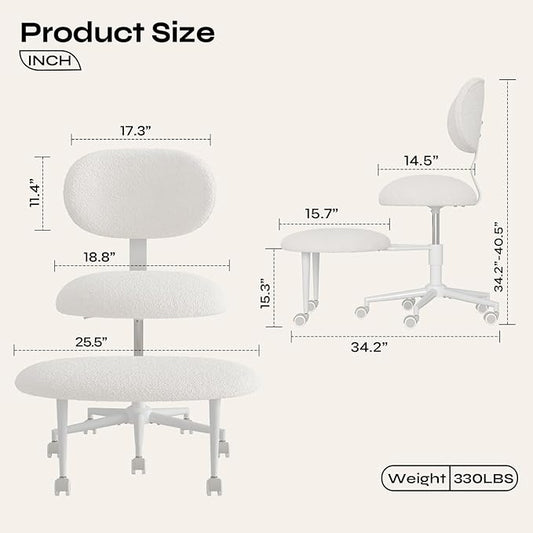 Ergonomic Cross Legged Office Chair with Wheels, ADHD Chair for Adults, Meditation Chair, Yoga Office Chair, Comfortable Back Support, Height Adjustable,Small Spaces, Teddy Fabric, White