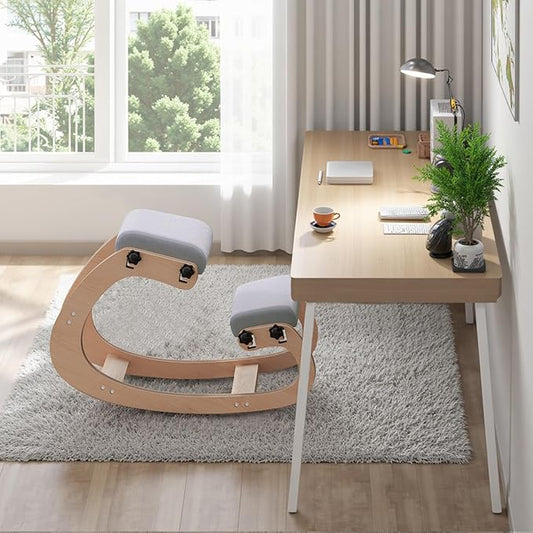 Ergonomic Office Kneeling Chair,Wooden Posture Knee Desk Chair for Work,Yoga Rocking Chairs for Relieve Back Pain,Kneel Adjustable Chair for Gaming,Home