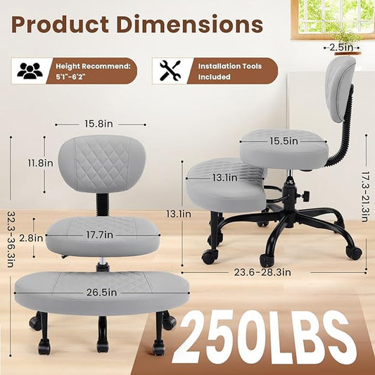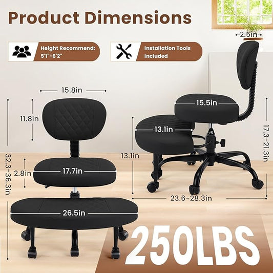 Cross Legged Office Chair with Wheels, Wide Criss Cross Kneeling Home Office Desk Chairs with Back Support, Ergonomic Adjustable Height ADHD Stool with Rotating Footrest for Yoga Meditation