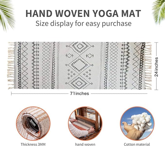 Cifupy Handmade Organic Yoga Mat made with Organic Cotton Yoga Mat - Non Slip Hand-Woven Foldable Yoga Rug Provides Excellent Comfort, Traction & Support for Indoor & Outdoor Use - 24 x 72 Inches