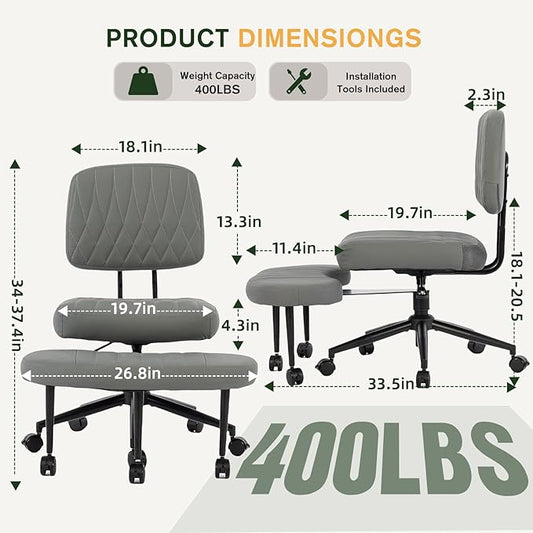 Ergonomic Cross Legged Office Chair with Brake Wheels, Wide Seat and Backrest for Meditation, ADHD Cross Legged Office Chair with Adjustable Height, 360°Rotating Footrest for Yoga Home Office