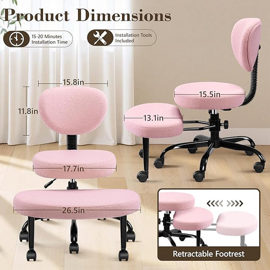 Ergonomic Cross Legged Office Chair with Wheels - Adjustable Height for Meditation, ADHD Desk & Yoga - Wide Criss Cross Design with Lumbar Support, Kneeling Chair - Pink