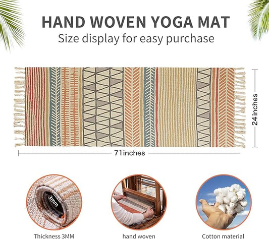 Cifupy Handmade Organic Yoga Mat made with Organic Cotton Yoga Mat - Non Slip Hand-Woven Foldable Yoga Rug Provides Excellent Comfort, Traction & Support for Indoor & Outdoor Use - 24 x 72 Inches