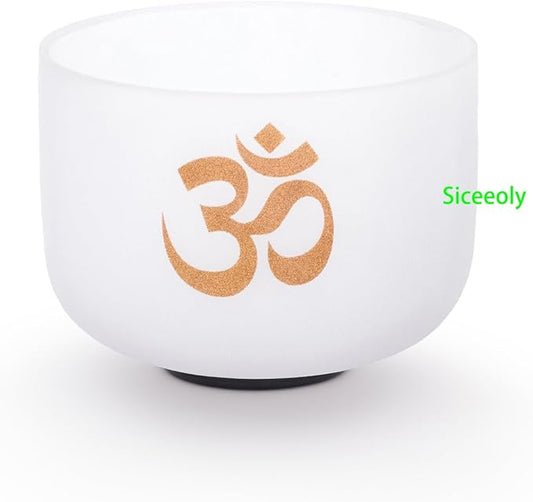 8" A Note 432HZ Om Design For Meditation Sound Yoga Healing Third-eye Chakra Crystal Singing Bowl Frosted Quartz with Durable Carrying Case Suede Striker O-ring