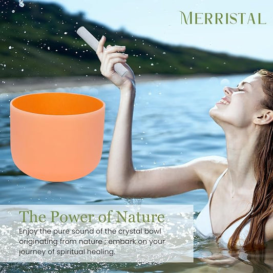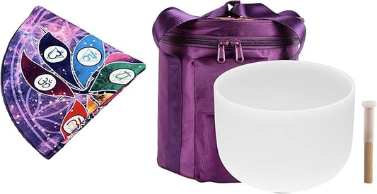 432HZ 11 Inchs Frosted Crystal Singing Bowl Set for Meditation Healing Yoga Chakra Quartz Crystal Sound Bowls with Heavy Duty Carry Case and Rubber Mallet,Suede Striker,O-rings