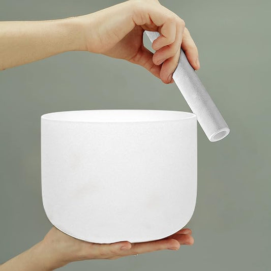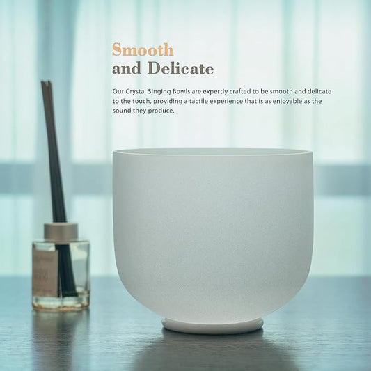 10 inch White A Note Third Eye Chakra Quartz Crystal Singing Bowl, for Healing Mindfulness Meditation Yoga Sound Baths, with Rubber Mallet O-ring