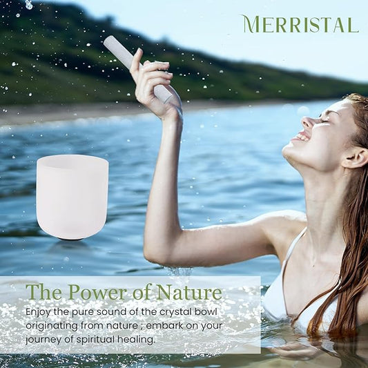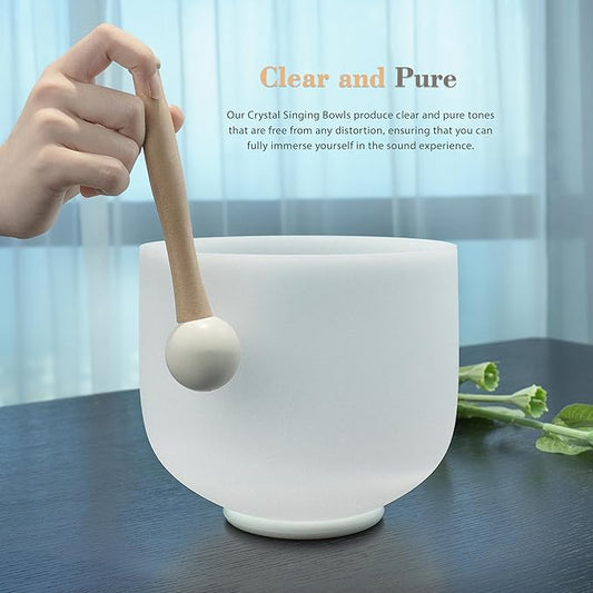 432HZ 7 Inchs Frosted Crystal Singing Bowl Set for Meditation Healing Yoga Chakra Quartz Crystal Sound Bowls with Heavy Duty Carry Case and Rubber Mallet,Suede Striker,O-rings