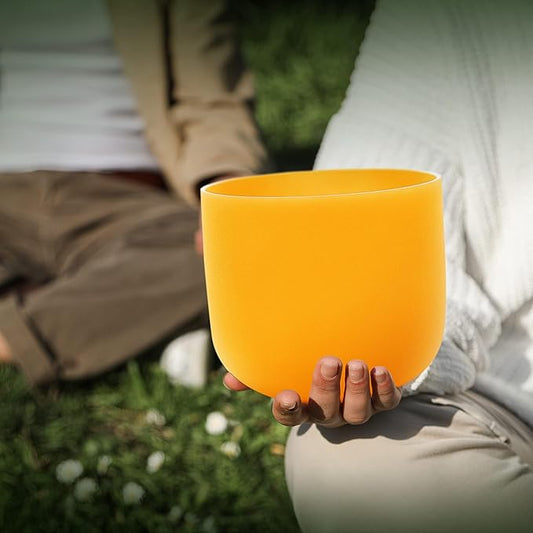 ALIOTH 7" Yellow E Note Crystal Singing Bowl Solar Plexus Chakra with Suede Mallet for Meditation, Yoga, Chakra Healing & Sound Therapy