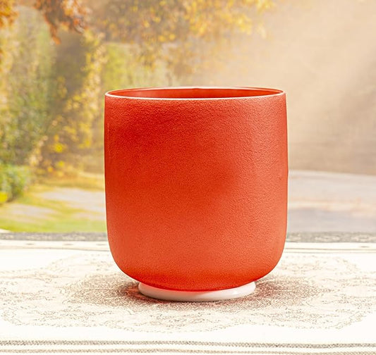 432HZ 8 Inchs C Note Red Frosted Crystal Singing Bowl for Meditation Healing Yoga Chakra Quartz Crystal Sound Bowls with Heavy Duty Carry Case and Rubber Mallet,Suede Striker,O-rings