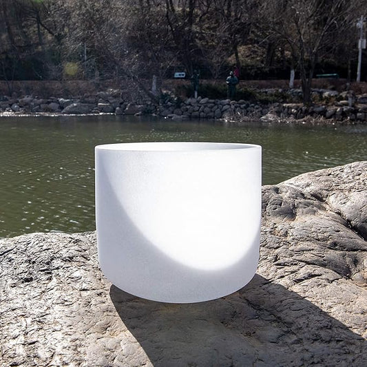 White 8 inch C Note Root Chakra Quartz Crystal Singing Bowl, for Healing Mindfulness Meditation Yoga Sound Baths, with Case Rubber Mallet