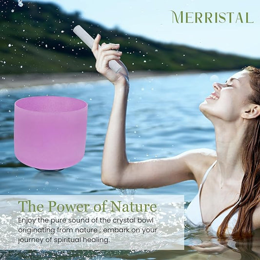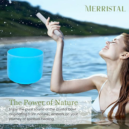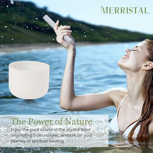 432HZ 10 Inchs Frosted Crystal Singing Bowl Set for Meditation Healing Yoga Chakra Quartz Crystal Sound Bowls with Heavy Duty Carry Case and Rubber Mallet,Suede Striker,O-rings