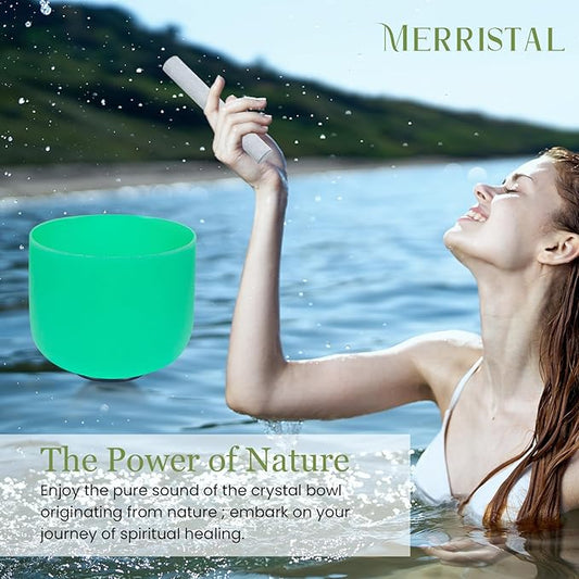 432HZ 8 Inchs F Note Green Frosted Crystal Singing Bowl for Meditation Healing Yoga Chakra Quartz Crystal Sound Bowls with Heavy Duty Carry Case and Rubber Mallet,Suede Striker,O-rings