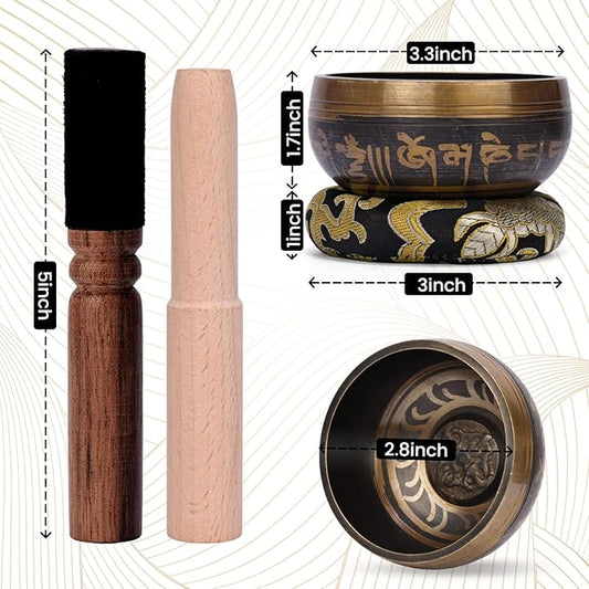 Tibetan Singing Bowl Set - 3" Portable Handcrafted Meditation Sound Bowl for Yoga, Mindfulness, Chakra Healing, Stress Relief, Complete Kit with Cushion & Mallet | Spiritual Gifts for Beginners 3 Inch