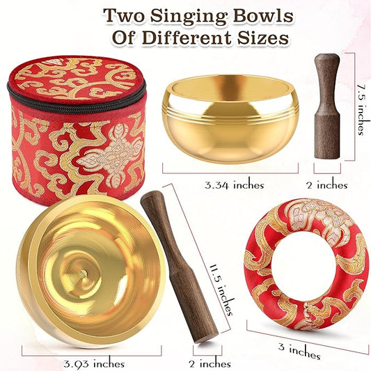 2-Pack Tibetan Singing Bowls Set - 100% Handmade in Nepal, Sound Bowl Meditation Set for Yoga, Chakra Healing, Meditation Gifts, Unique Gifts for Women