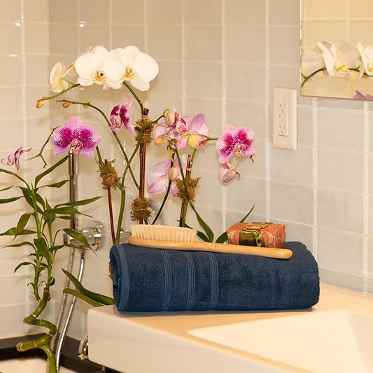 Mosobam Luxury Turkish Bath Towels 30X58 Navy Blue Oversize 700 GSM Bamboo Viscose & Aegean Turkish Combed Cotton