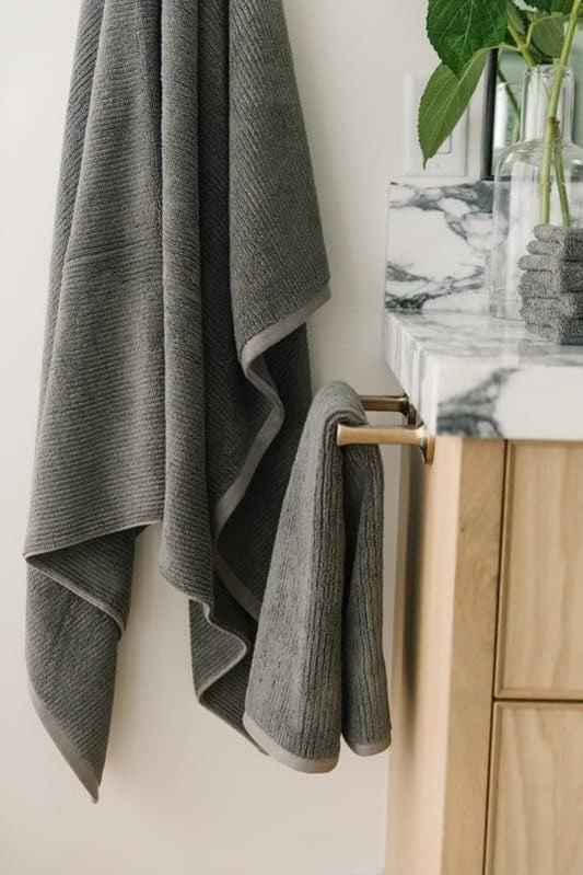 Cozy Earth Ribbed Bath Towel Set - 60% Cotton 40% Viscose from Bamboo Bathroom Towels - Soft & Absorbent Textured Ribbed Pattern - 2 Pack Charcoal