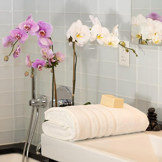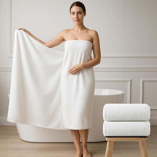 Mosobam Luxury Turkish Towels Set of 2 Bath Sheets 35X70 White Oversize 700 GSM Bamboo Viscose & Aegean Turkish Combed Cotton