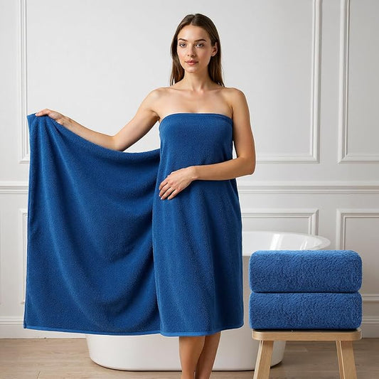 REDKISS 2 Piece Luxury Bath Towel Set - 31x62 inch Oversized Thick Bath Sheets, 100% Cotton, 900 GSM, Super Soft, Highly Absorbent, Quick Dry Large Shower Towels for Bathroom, Pool, Gym, Spa, Navy