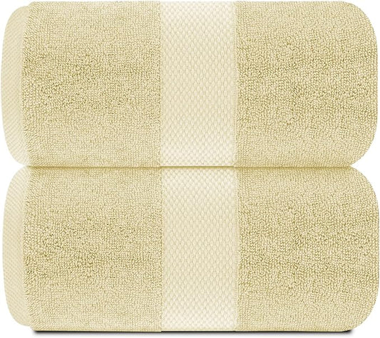 White Classic Luxury Soft Beige Bath Sheet Towels - 650 GSM Cotton Luxury Bath Towels Extra Large 35x70 | Highly Absorbent and Quick Dry | Hotel Collection Extra Large Bath Towels Oversized, 2 Pack