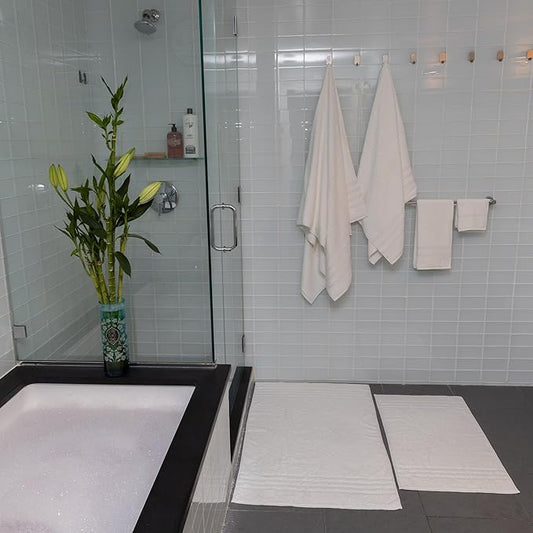 Mosobam Luxury Turkish 6pc Mixed Bath Bundle 2 Sizes for Body Towels and 2 for Mats White 700 GSM & 1000 GSM Bamboo Viscose & Aegean Turkish Combed Cotton