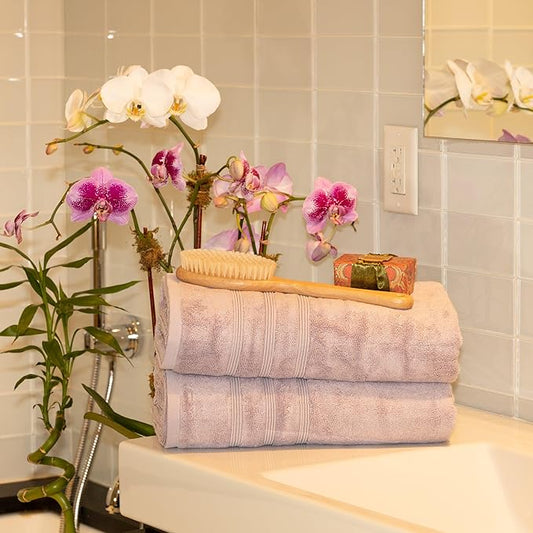 Mosobam Luxury Turkish Set of 2 Bath Towels 30X58 Lavender Aura Oversize 700 GSM Bamboo Viscose & Aegean Turkish Combed Cotton