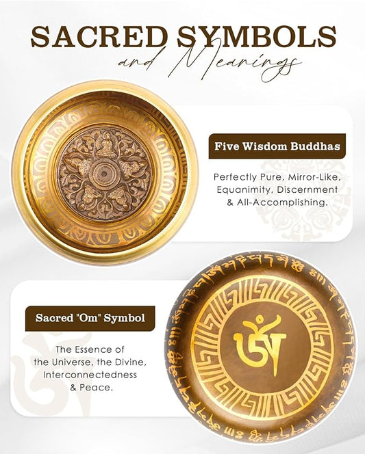 Tibetan Singing Bowls, Authentic Meditation Sound Bowls Handcrafted in Nepal for Yoga, Chakra Healing, Mindfulness, Self Care Spiritual Gifts for Women