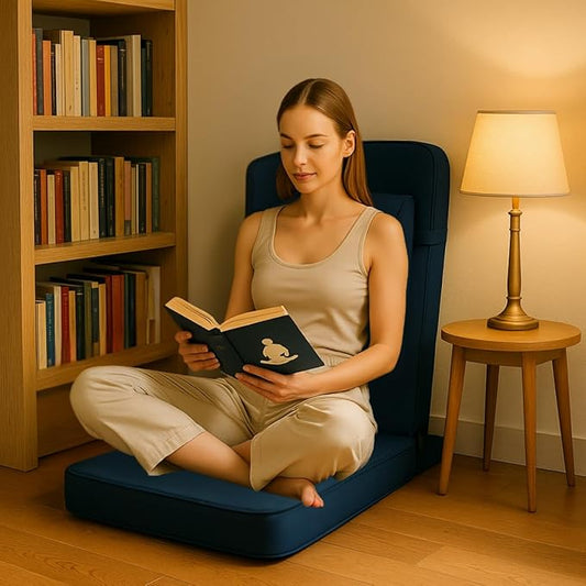 Friends Of Meditation Relaxing Buddha Meditation Chair | Detachable Rectangular Back Support & Zafu Cushion | Portable Folding Chair | with Back Support | Yoga Chairs for Adults | Navy Blue
