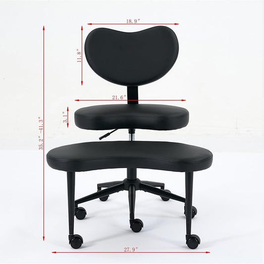Cross-Legged Meditation Chair with Wheels, Adjustable Desk Chair for Home Office, Ergonomic Floor Seat for ADHD & Yoga, Criss Cross Chair with Lumbar Support, Memory Foam Cushion (Black-PU Leather)