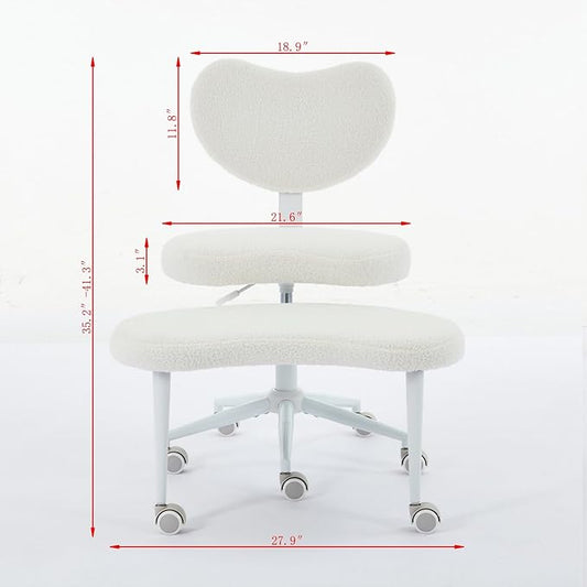 Cross-Legged Meditation Chair with Wheels, Adjustable Desk Chair for Home Office, Ergonomic Floor Seat for ADHD & Yoga, Criss Cross Chair with Lumbar Support, Memory Foam Cushion (Ivory-Teddy Fabric)