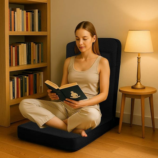 Friends Of Meditation Relaxing Buddha Meditation Chair | Detachable Rectangular Back Support & Zafu Cushion | Portable Folding Chair | with Back Support | Yoga Chairs for Adults | Black