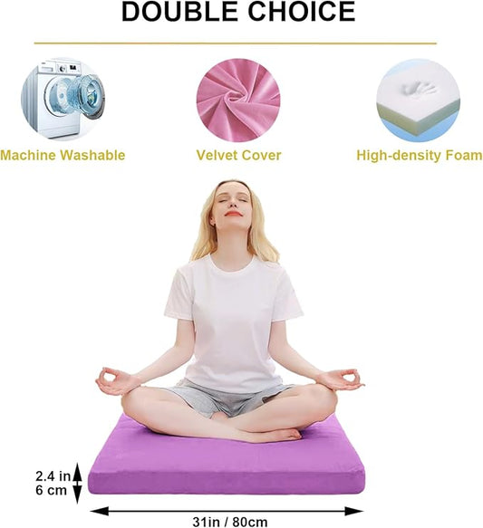 Velvet Zabuton Meditation Mat, 31 * 31 inches, Yoga Meditation Cushion Floor (Purple)