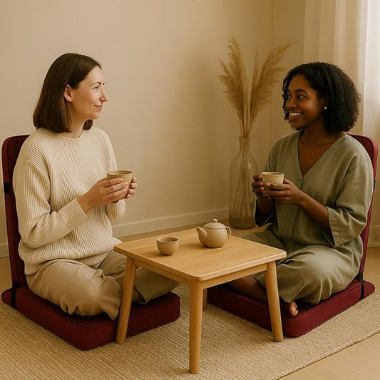 Friends of Meditation Relaxing Buddha Meditation Chair | Detachable Rectangular Back Support & Zafu Cushion | Portable Folding Chair | Floor Chair with Back Support | Yoga Chairs for Adults | Maroon