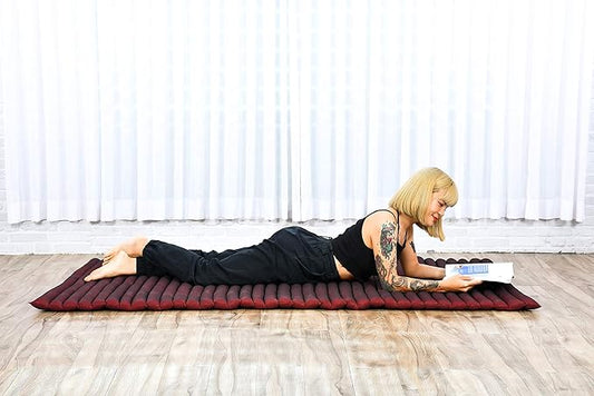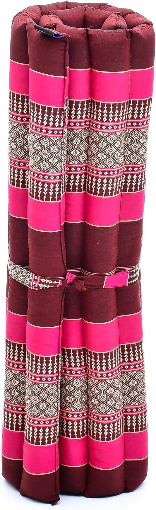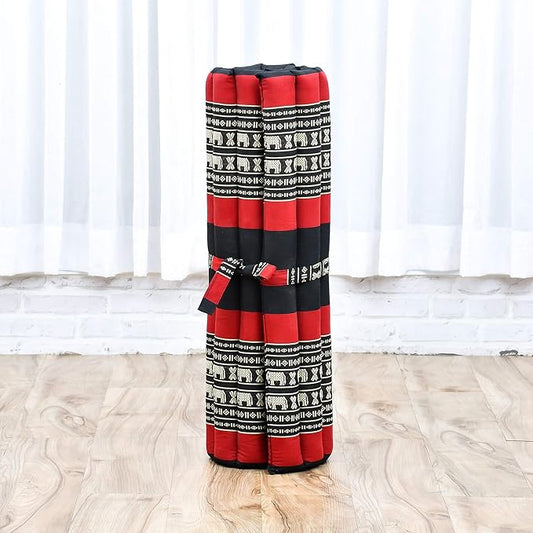 Leewadee - Kapok Roll Mat – Handcrafted Folding Sleep & Relaxation Mattress from Thailand, Ideal as Guest Bed, Camping Mat, Yoga Mat or Traditional Futon, 75 x 39 inches, Red