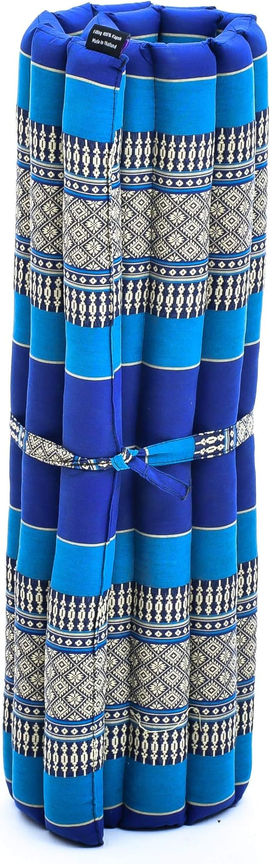 Leewadee - Kapok Roll Mat – Handcrafted Folding Sleep & Relaxation Mattress from Thailand, Ideal as Guest Bed, Camping Mat, Yoga Mat or Traditional Futon, 75 x 39 inches, Green Red