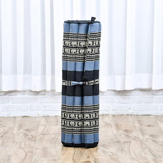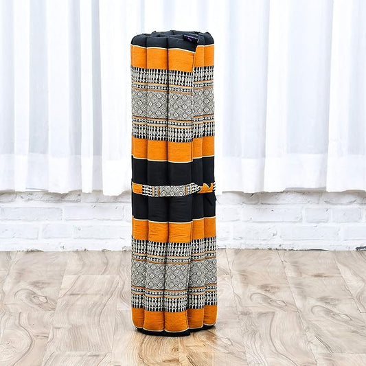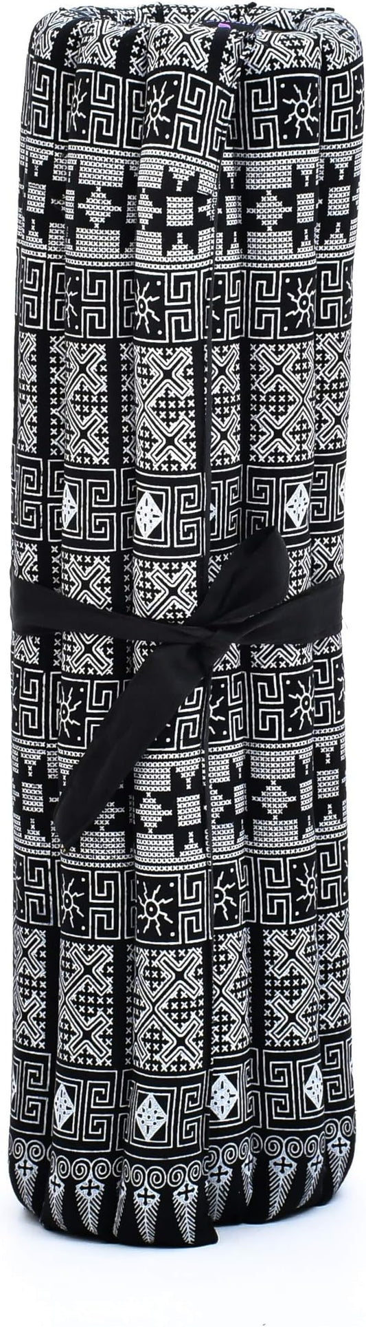 Leewadee - Kapok Roll Mat – Handcrafted Folding Sleep & Relaxation Mattress from Thailand, Ideal as Guest Bed, Camping Mat, Yoga Mat or Traditional Futon, 75 x 39 inches, Black White