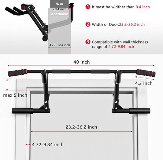 ONETWOFIT 2025 Upgrade Multi-Grip Pull Up Bar for Doorway - 460 lbs Heavy Duty Chin-Up Bar for Home Gym Exercise, Door Frame Pull Up Bar for Almost All Doors
