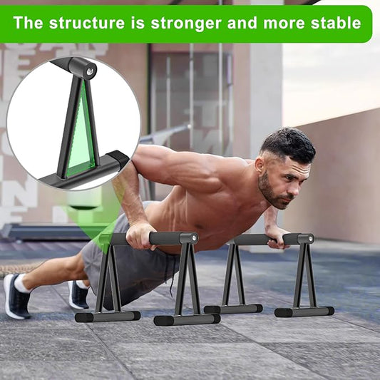 Dolibest Push Up Bar, 12'' High Parallettes Bars with 8 Rubber Feet & Comfortable Handle, Dip Bars with Stable Triangle Base for Calisthenics, Handstand, Gym & Home Exercise, Easy Assembly (600LB)