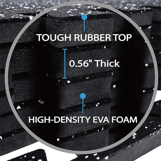 0.56 Inch Thick 48 Sq Ft Gym Flooring for Home Gym, 12 Tiles Robust Rubber Top with Eva Foam Exercise Equipment Mats, Protective Flooring Puzzle Mat for Fitness Room