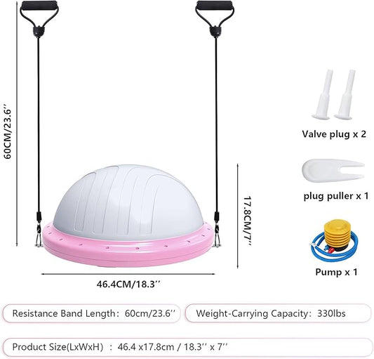 ZPZ Half Balance Ball Trainer, Compact Portable Inflatable Exercise Yoga Stability Ball with App-Based Balance Game, Pilates Resistance Bands, Foot Pump, Non-Slip Base for for Full-Body Workouts, Home Gym & Easy Storage (18.3 Inch Pink)