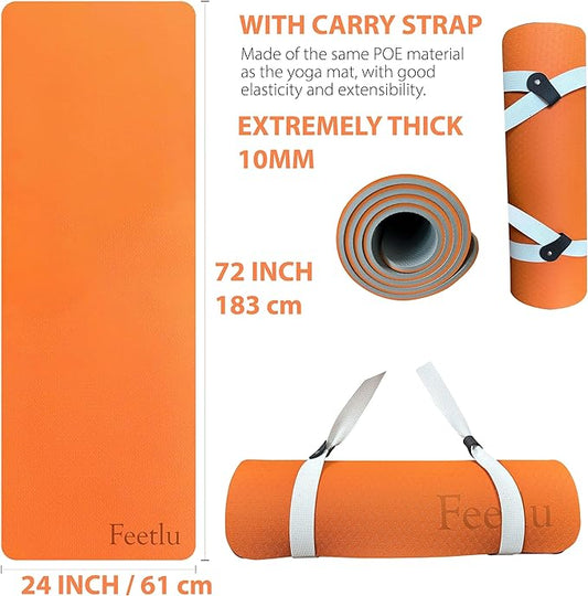 Extra Thick Exercise Yoga Mat with Strap - 2/5 Inch (10MM), Non-Slip Workout Mat for Yoga, Pilates, and Floor Exercises