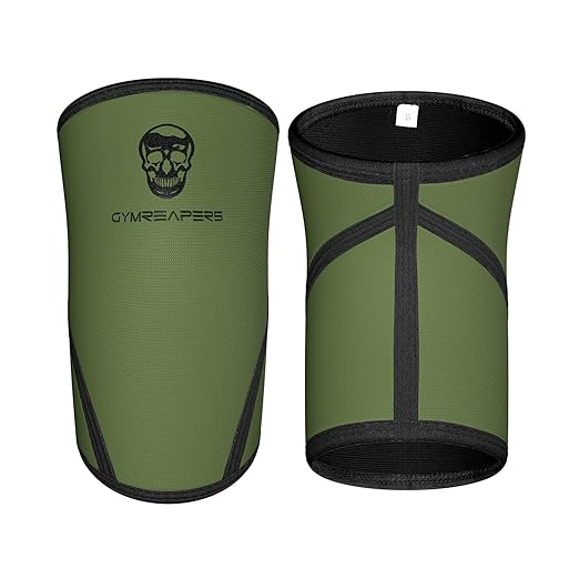 Gymreapers Knee Sleeves (Pair w/Bag) - Knee Compression Sleeve Support for Squats, Weightlifting, and Powerlifting 7MM Neoprene Sleeves - 1 Year Warranty (Military Green/Black, X-Large)