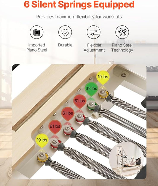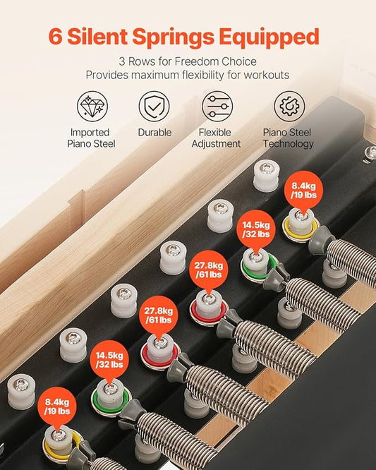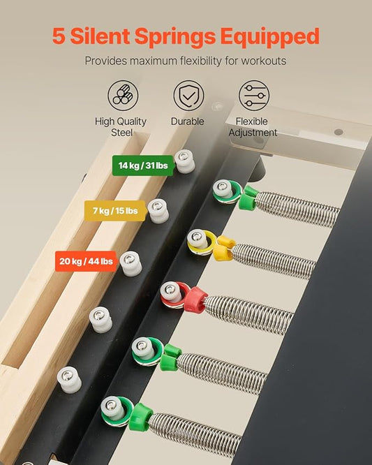 VEVOR Pilates Reformer Machine, Pilates Workout Equipment for Home Gym Studio Use, Pilates Bed with Dual Resistance- Spring & Cord, Reformer Set, Up to 400 LBS