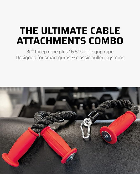 2 Ergonomic Tricep Ropes | 30" & 16.5" | Non-Slip Cable Attachment | Wrist Pressure Relief | Grip Strength, Forearm Activation | Home & Commercial Gym Accessory, For Cable Machine, Smart Gym