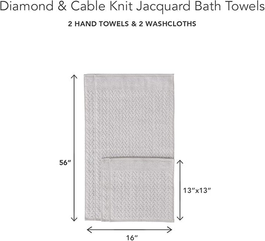 Texere 100% Organic Cotton Diamond Jacquard 700 GSM Luxury Bath Towel Sets - 2 Ultra Soft, Large Bath Towels, 2 Hand Towels, 2 Washcloths (Diamond, Cathedral Gray, 6 Piece)
