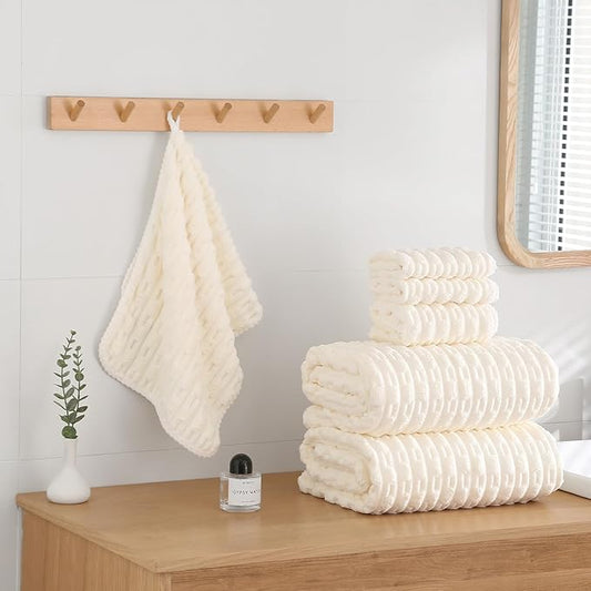 Texere 100% Organic Cotton Jacquard 650 GSM Premium Bath Towel Sets - Extra Absorbent Quick Dry and Plush, 2 Large Bath Towels, 2 Hand Towels, 2 Washcloths (Cable, Light Taupe, 6 Piece)
