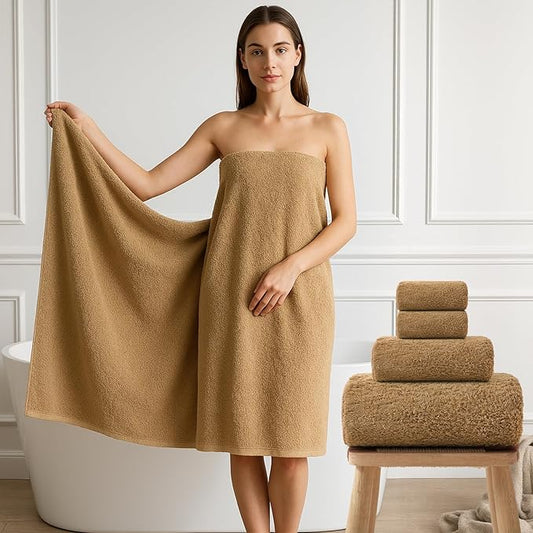 REDKISS Ultra-Plush Bath Towel Set - 900GSM Premium Thick Cotton for Bathroom & Spa, Super Absorbent Quick-Dry Bath Sheets with No Shedding (4-Piece Set for Adults, Luxury Hotel & Home Use)-Brown