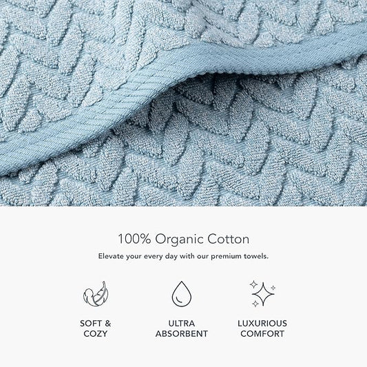 Texere 100% Organic Cotton Jacquard 650 GSM Premium Bath Towel Sets - Extra Absorbent Quick Dry and Plush (Cable, Smoke Blue, 2 Bath & 2 Hand Towels)