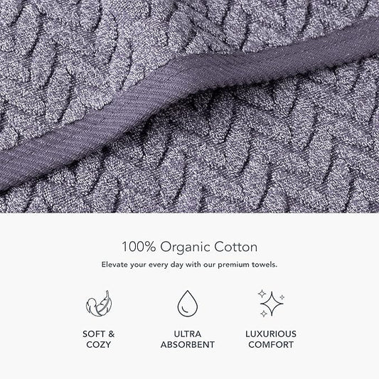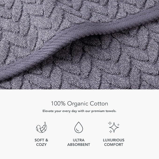 Texere 100% Organic Cotton Jacquard 650 GSM Premium Bath Towel Sets - Extra Absorbent Quick Dry and Plush (Cable, Excalibur, 4 Bath Towels)